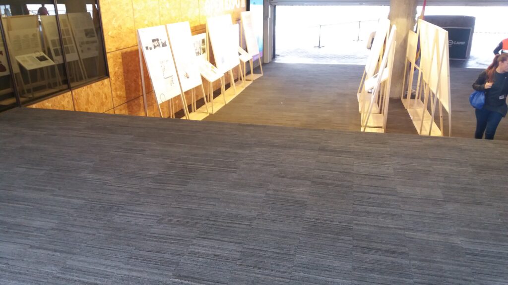 Felpudo procedente del reciclado de neumáticos de aviones y tractores unidos en tiras para formar una excelente alfombra para cualquier entrada.