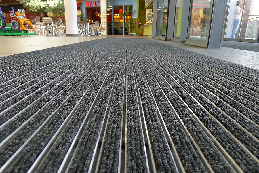 Limpieza: enrollar el felpudo, barrer o aspirar la suciedad, lavar el suelo, desplegar el felpudo en el mismo lugar. El felpudo en sí debe aspirarse con regularidad y limpiarse periódicamente en húmedo con dispositivos de limpieza de alfombras (aspirador). Solo se permiten productos químicos que no dañen el caucho y el aluminio.
